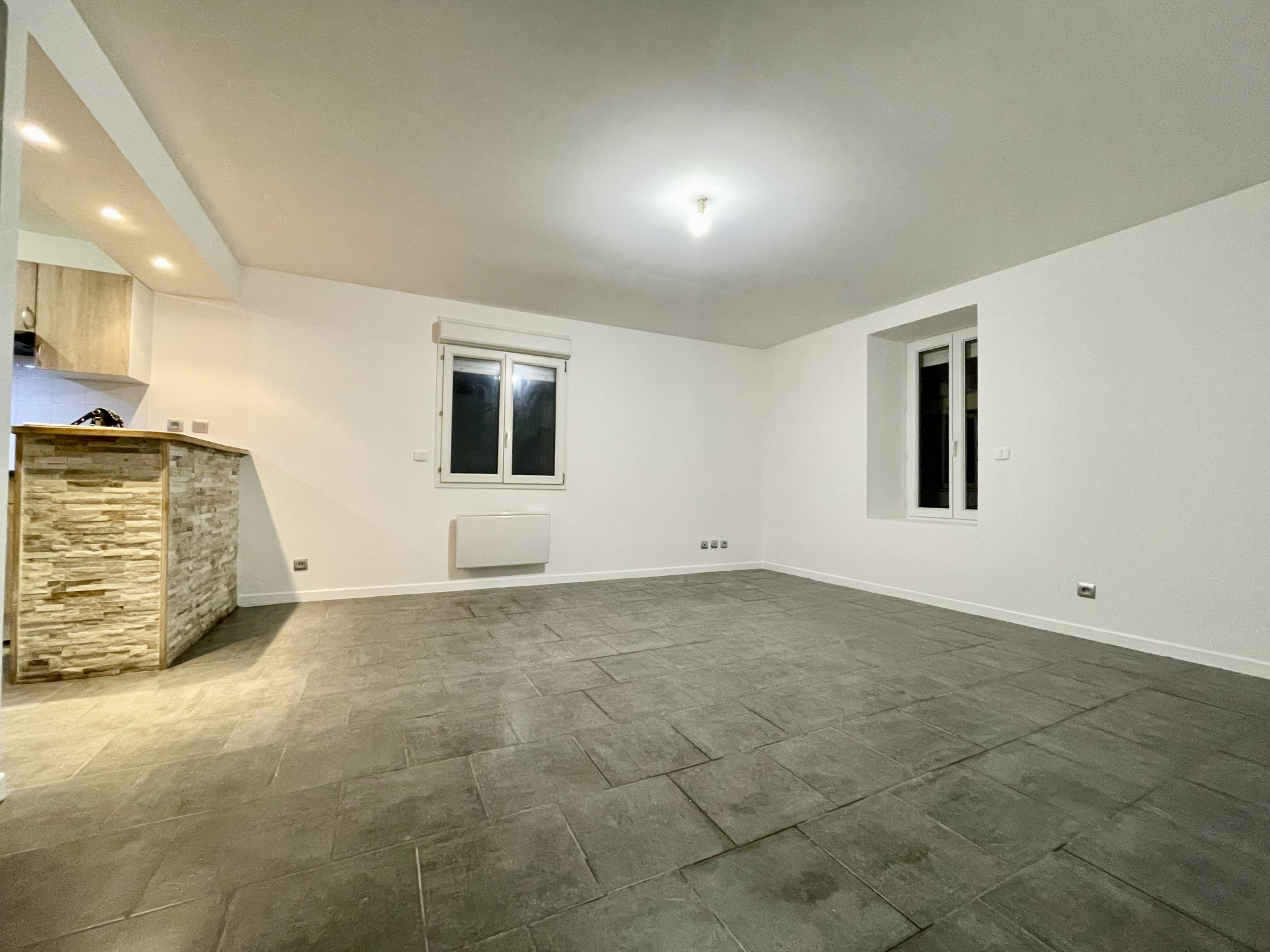 Joli appartement T1 rénové à neuf composé d'une cuisine semi-aménagée ouverte sur une pièce de vie, une salle d'eau avec WC.