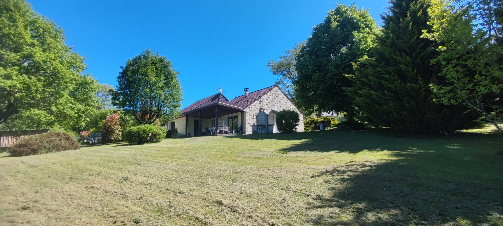Nichée au cœur d’un environnement champêtre, cette maison de plain-pied offre une qualité de vie rare, entre nature et sérénité. Le séjour, chaleureux et lumineux, est agrémenté d’une cheminée à bois et s’ouvre directement sur une terrasse couverte, idéale pour profiter de l’extérieur en toute saison. La maison dispose également d’une cuisine semi-ouverte, de trois chambres, d’une salle d’eau ainsi que de deux WC, dont un intégré à l’espace buanderie. Un garage attenant et communiquant complète l’habitation, avec un espace chaufferie/atelier. À l’extérieur, plus d’un hectare de terrain s’étend autour de la maison, offrant une vue dégagée sur la campagne environnante. Hangar, chalet et carport viennent enrichir l’ensemble, laissant libre cours à de nombreux projets : jardin, animaux, stockage ou activité annexe. Ici, le calme, l’air pur et la verdure rythment le quotidien, tout en conservant la proximité des commodités : Égletons et ses infrastructures sont accessibles en seulement 10 minutes. Un cadre de vie privilégié, idéal pour se ressourcer ou concrétiser un projet de vie au vert.