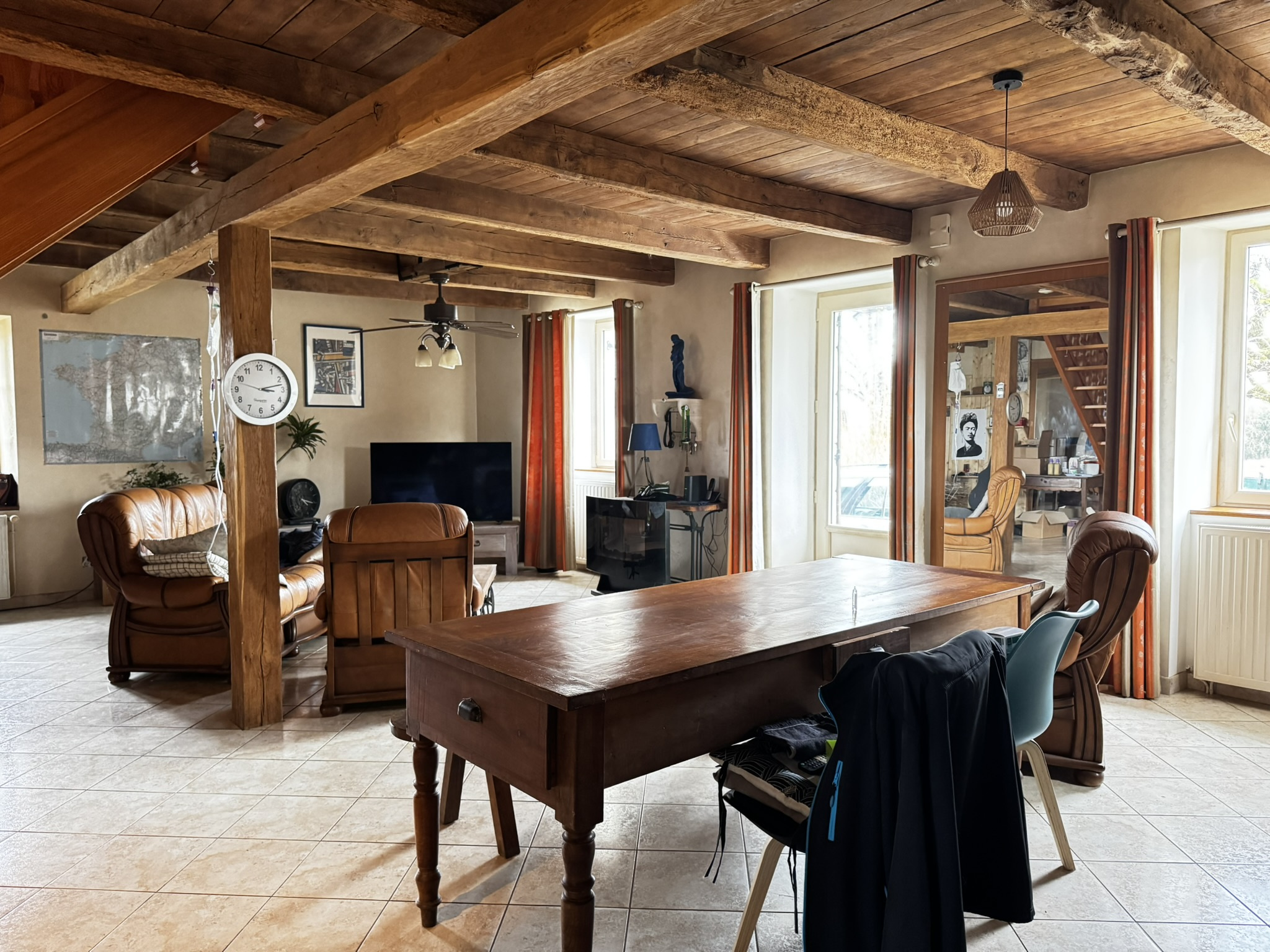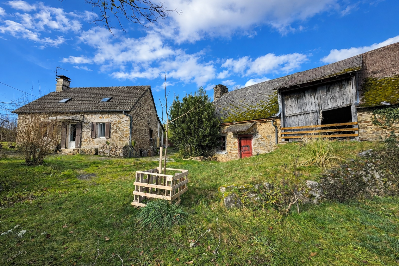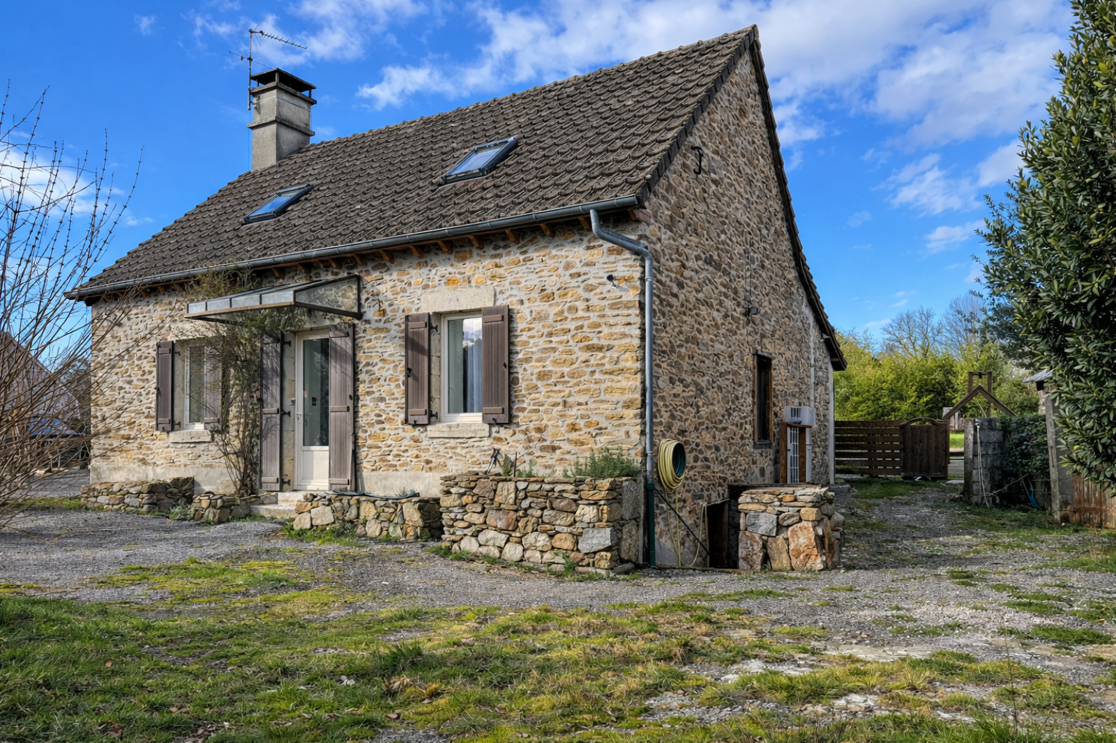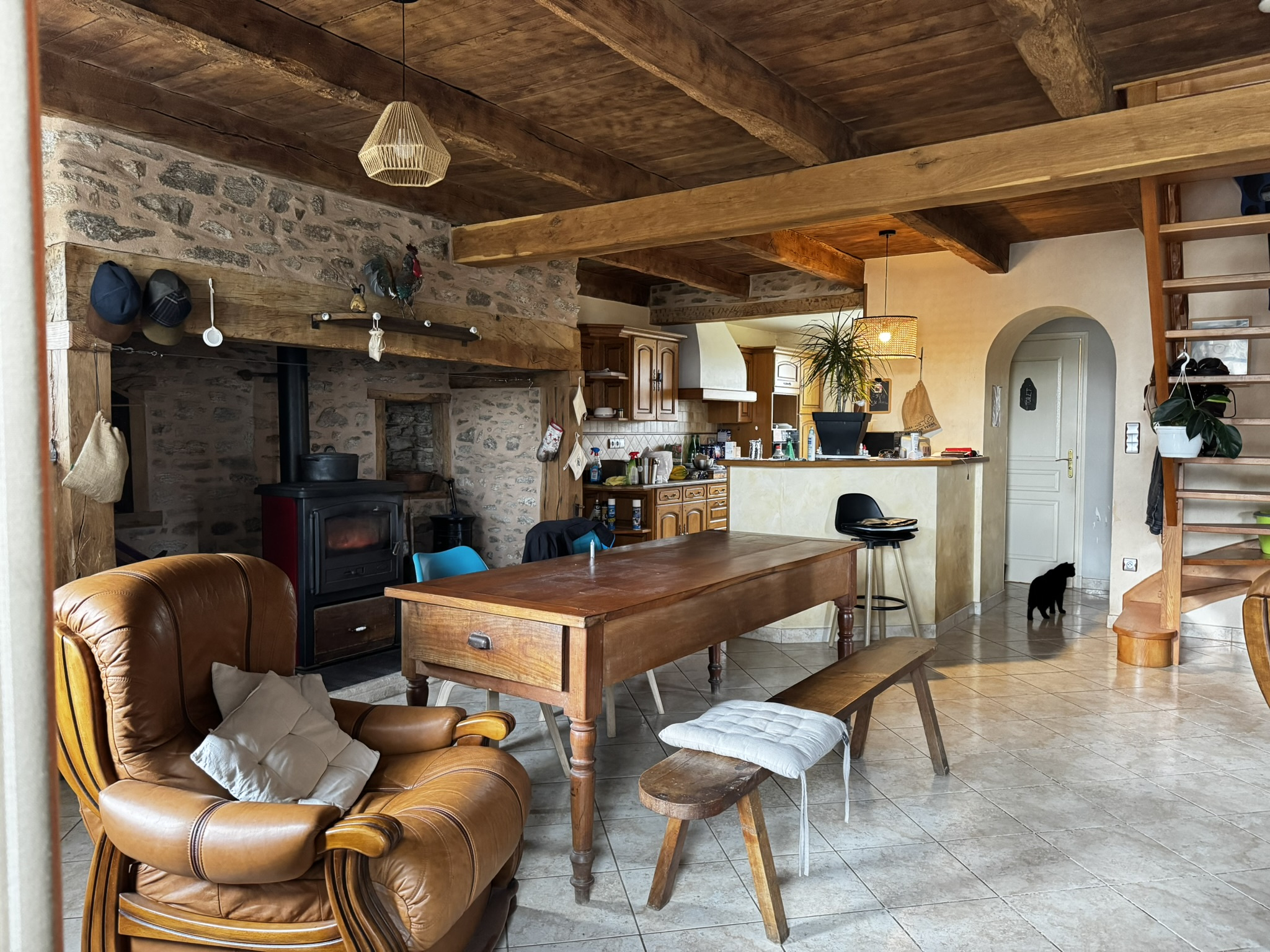Nichée dans un charmant hameau de Soursac, cette propriété pleine de caractère allie calme, authenticité et confort. La maison, entièrement habitable sans travaux à prévoir, bénéficie d’un double vitrage, d’un chauffage central par pompe à chaleur air/eau complété par un poêle à bois pour un confort optimal. Au rez-de-chaussée, vous profiterez d’un vaste espace de vie de plus de 50m², agrémenté d’une authentique cheminée en pierre, ainsi que d’une cuisine aménagé, d’une arrière-cuisine/buanderie, d’une salle de bains avec baignoire et douche, et d’un WC indépendant. À l’étage, le coin nuit se compose de trois chambres, dont une avec espace dressing. Côté extérieur, une grange d’environ 80m² au sol, un atelier et un beau terrain de plus de 2 600m² avec puits viennent compléter cet ensemble.